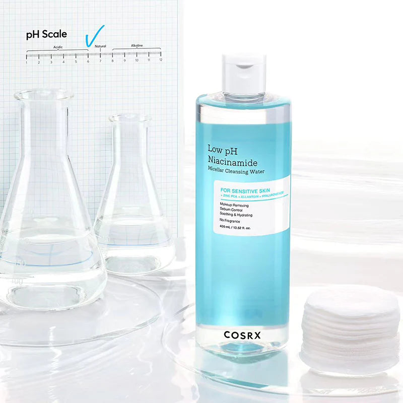 The COSRX Low pH Niacinamide Micellar Cleansing Water is a gentle, pH-balanced formula perfect for sensitive skin. Infused with niacinamide, zinc PCA, and sodium hyaluronate, it effectively removes makeup, dirt, and excess sebum without stripping or irritating the skin.