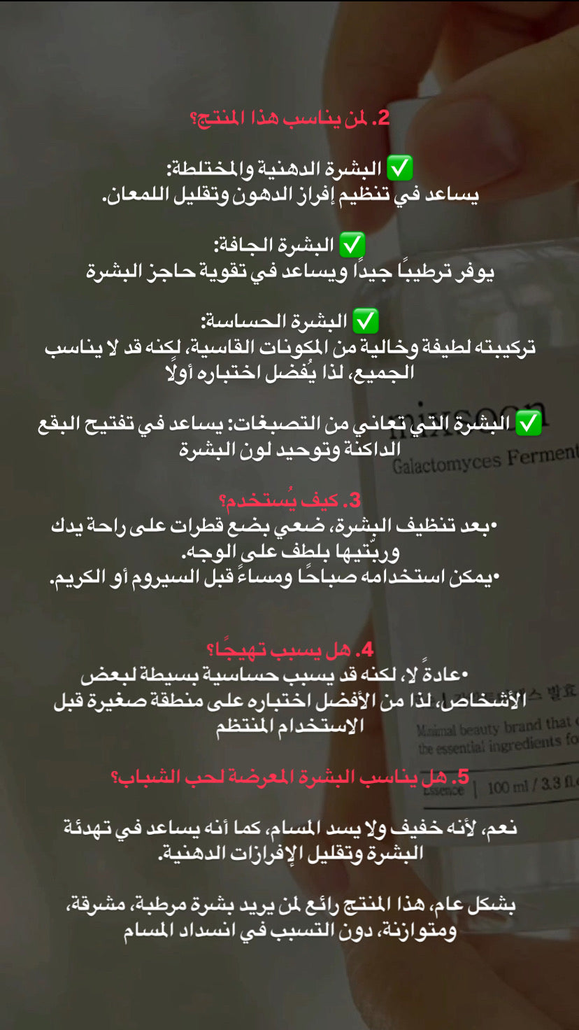 مع المترشح المخمر الذي يحتوي فقط على المكونات الحقيقية التي يحتاجها الجلد حقًا، واستبعاد المكونات غير الضرورية قدر الإمكان، وملء البشرة الباهتة برطوبة عميقة للعناية ببشرة نقية.