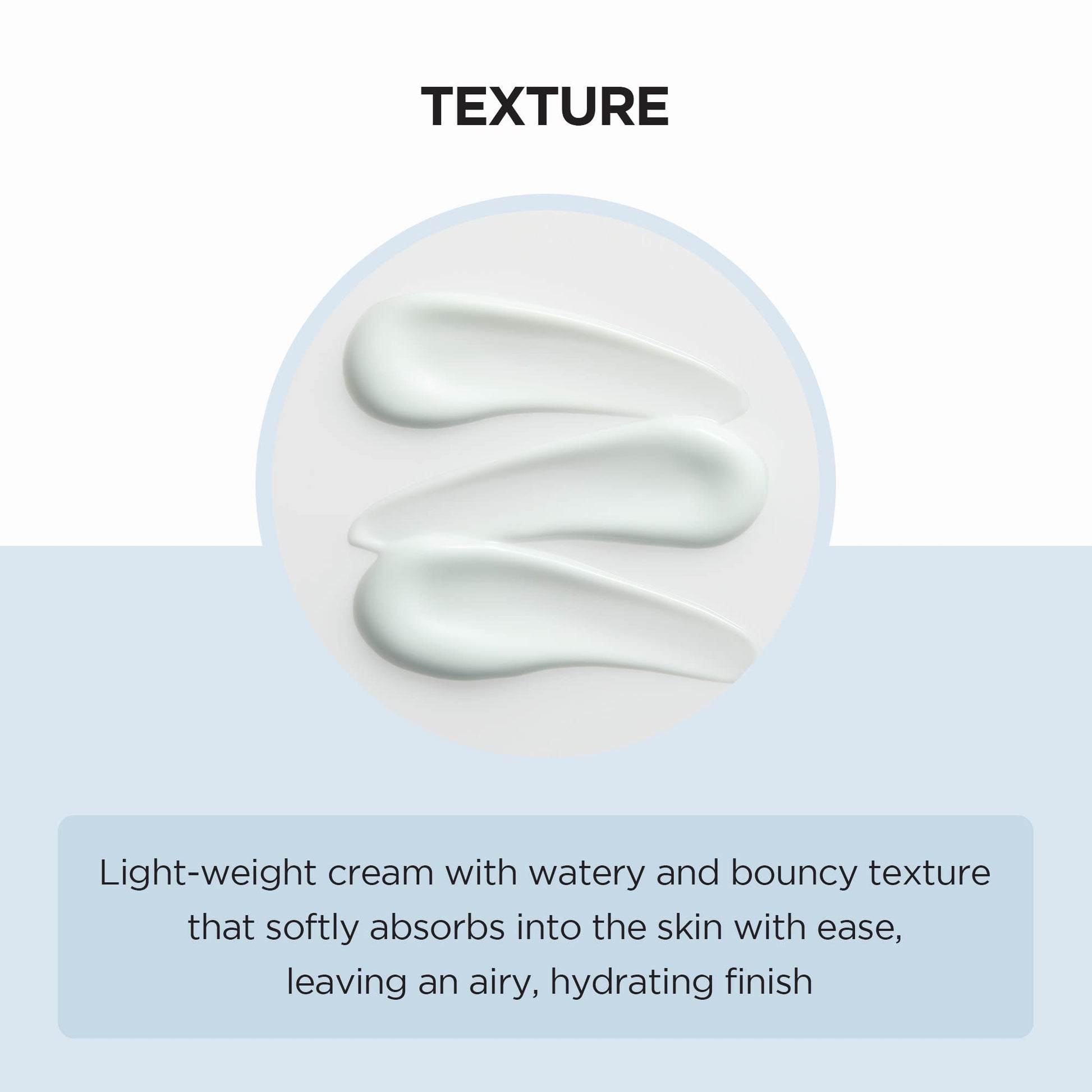 قوام كريمي مرطب متوسط الوزن يمتصه الجلد بسهولة، ويترك لمسة نهائية مرطبة-